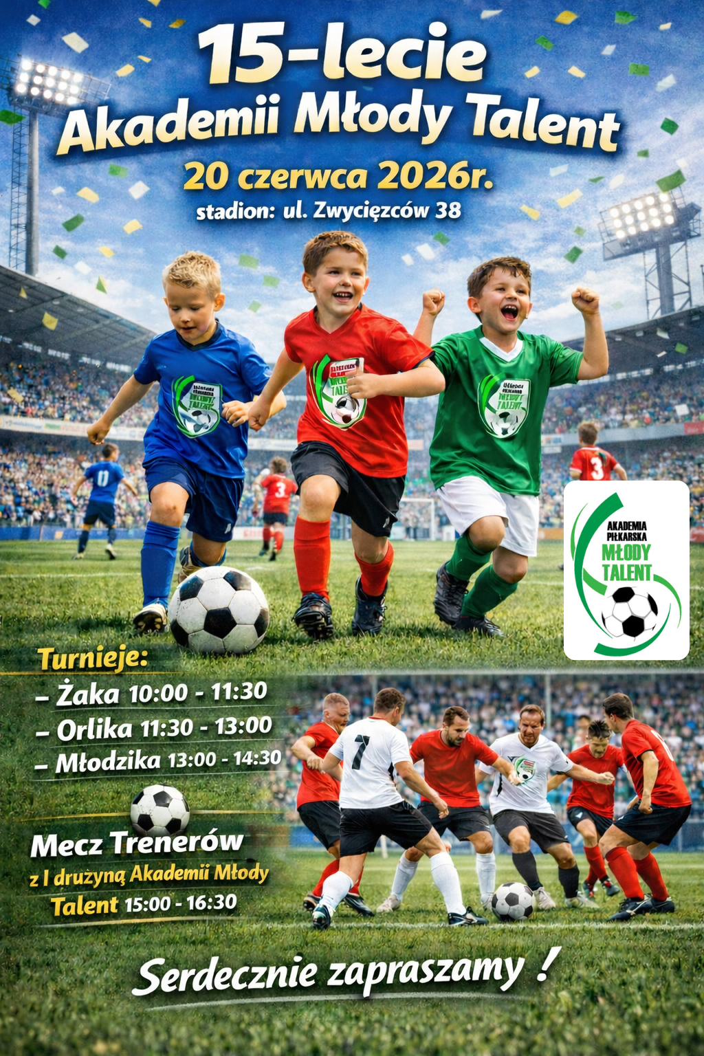 15:00–16:30 – mecz Trenerzy vs I drużyna Akademii Młody Talent